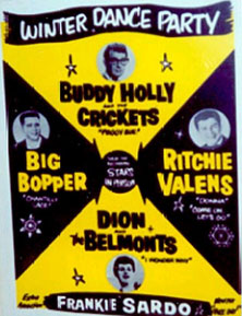 3 Februarie 1959 – ziua care a cutremurat America: un accident aviatic îi răpeşte contemporanilor pe trei dintre starurile în ascensiune ale vremii: Charles Hardin Holley (alias Buddy Holly – That will be The Day; Peggy Sue); Richard Valenzuela (“Ritchie Valens” – Oh, Donna) şi Jiles P. Richardson (“Big Bopper” – Chantilly Lace)… Băieţii erau obosiţi de ritmul concertelor contractate şi au dorit un americănism banal: să-şi “cumpere niţeluş de timp”. Aşa că, în locul disconfortului sigur al autobuzului îngheţat, au ales un avion personal – care s-a prăbuşit la puţin timp după decolare, într-o furtună de zăpadă…